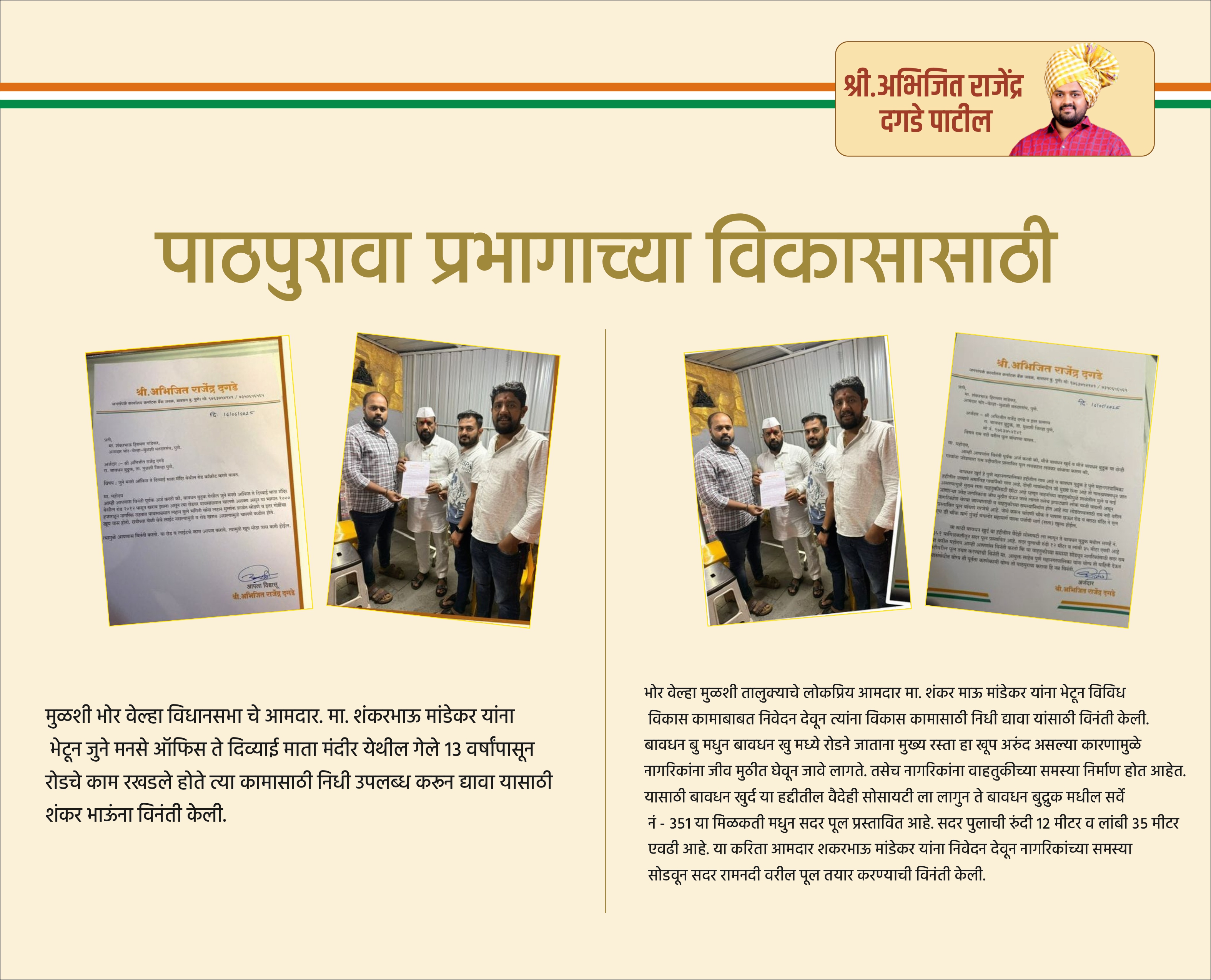 गेल्या ८ ते १० वर्षांपासून बावधन, भुसारी कॉलनी आणि परिसरातील नागरिकांसाठी दिवस-रात्र एक करून काम करत आहे. माझ्या कामाची प्रेरणा ही केवळ राजकारण नसून, माणुसकी, जबाबदारी आणि समाजाप्रती असलेली निष्ठा आहे.
